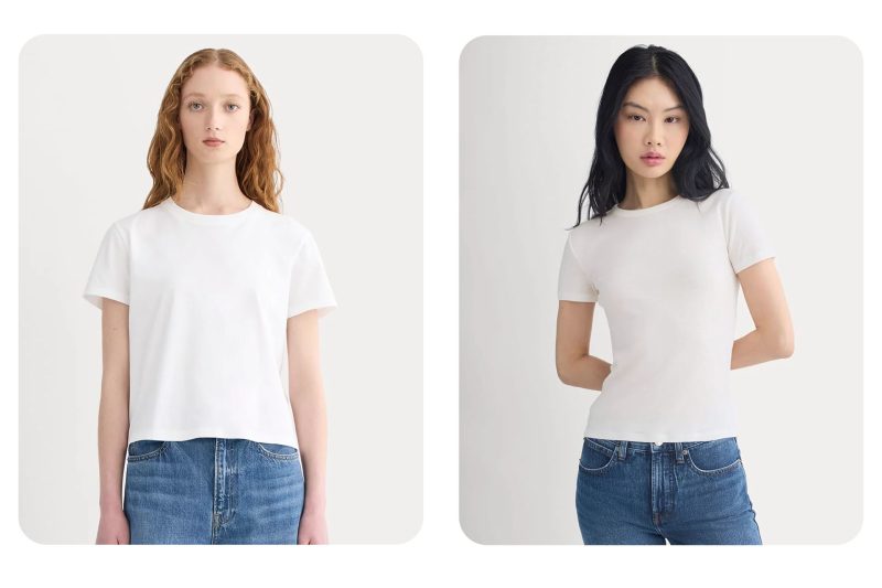 EverlaneのオーガニックコットンTシャツは、ボーイッシュな雰囲気とフェミニンなシルエットのバランスが絶妙。肌に吸い付くような柔らかさで、ベーシックなのにどこか上品な雰囲気が漂う一着です。