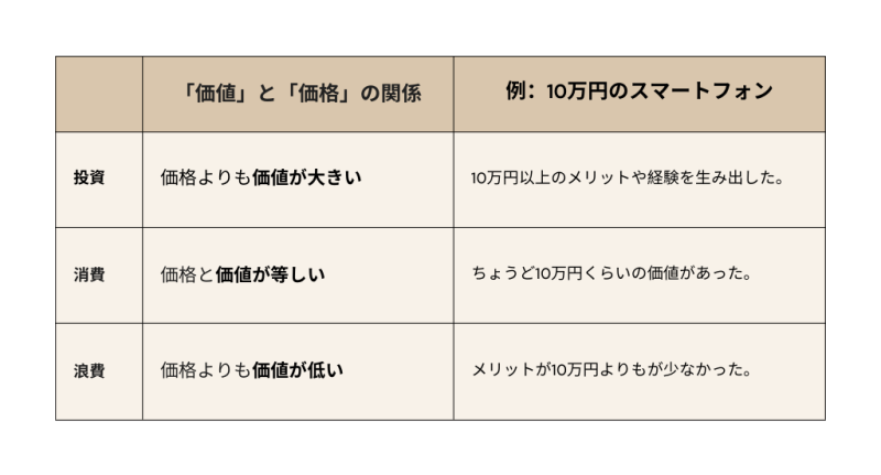 買い物を単なる支出で終わらせず、賢く生かすためには、「投資」「消費」「浪費」を区別してお金を使うことが不可欠です。判断基準は、支払った「価格」に対して、ご自身が感じる「価値」の大小です。